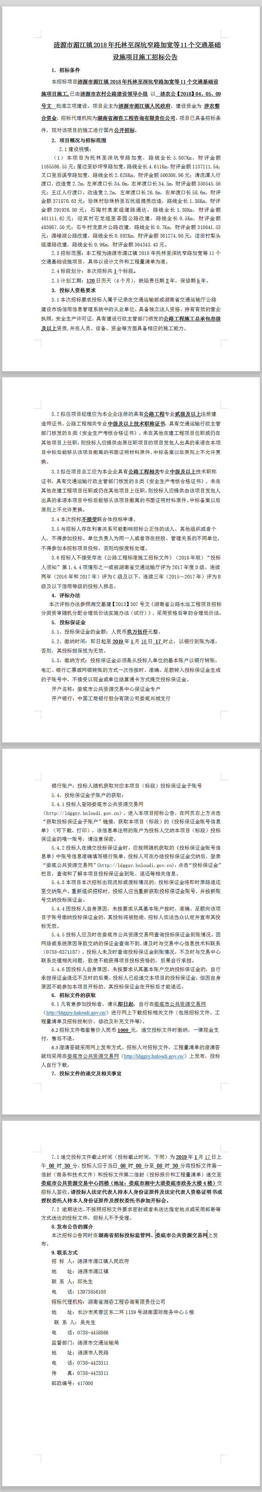 漣源市湄江鎮2018年托林至深坑窄路加寬等11個交通基礎設施項目施工招標公告