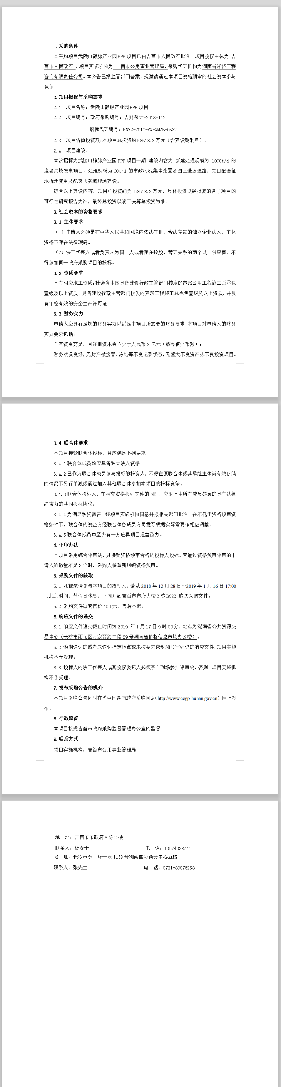 武陵山靜脈產業園PPP項目采購邀請公告