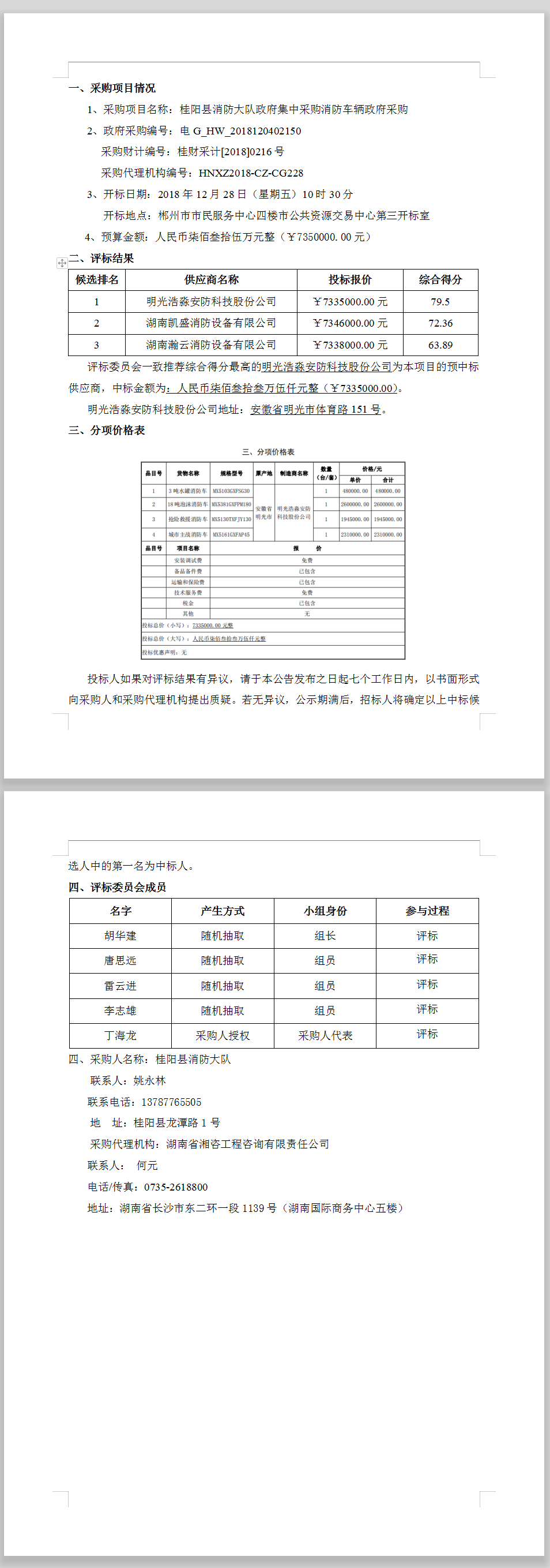 桂陽縣消防大隊政府集中采購消防車輛政府采購中標結果公示