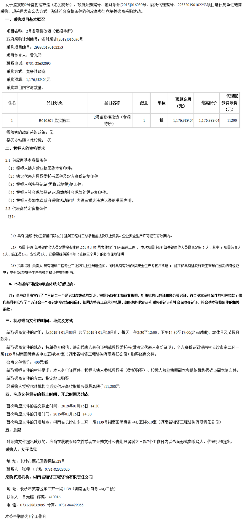 湖南省女子監(jiān)獄2號(hào)備勤樓改造(老招待所)工程磋商邀請(qǐng)