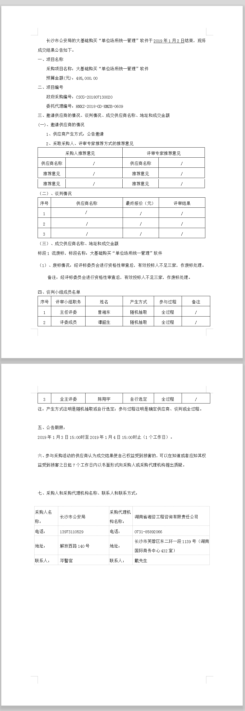 大基礎購買“單位場所統(tǒng)一管理”軟件結果公告