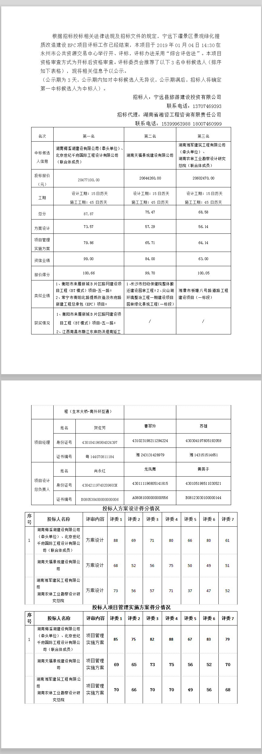 寧遠下灌景區景觀綠化提質改造建設EPC項目 中標候選人公示
