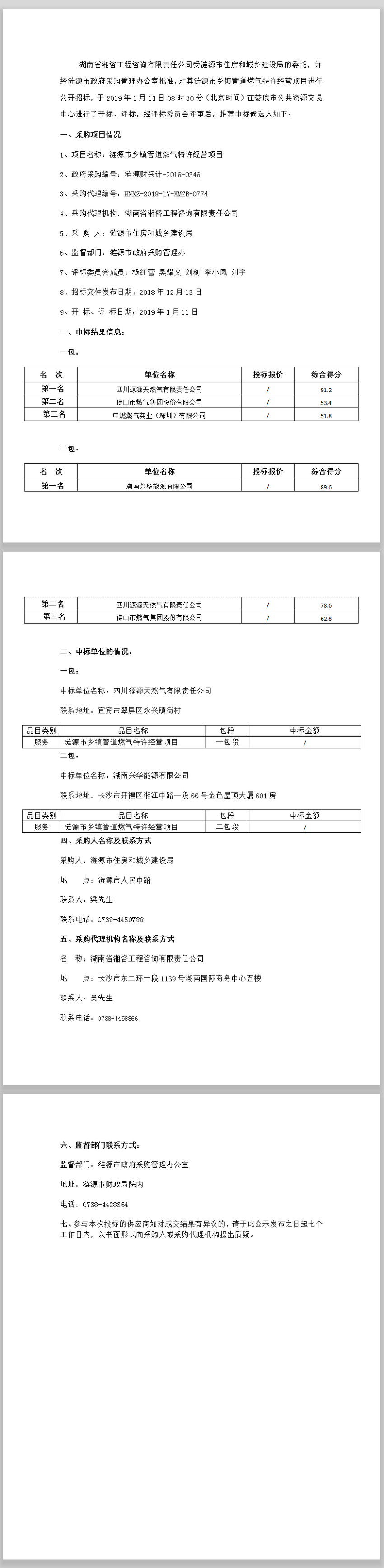 漣源市鄉(xiāng)鎮(zhèn)管道燃氣特許經(jīng)營項目招標中標候選人公告
