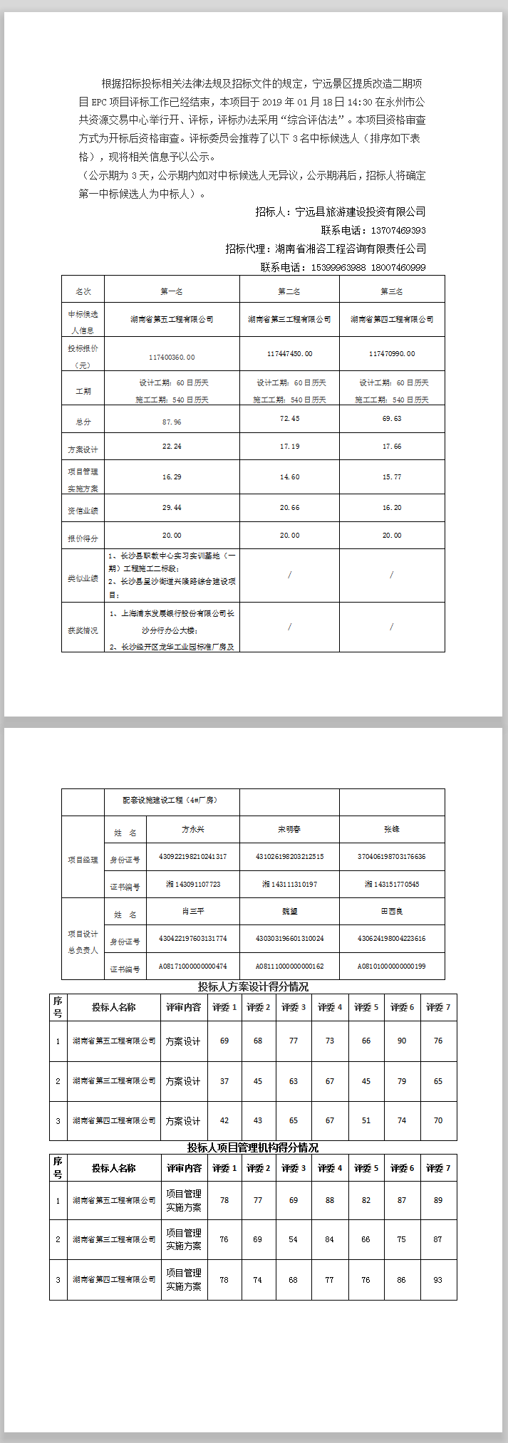 寧遠景區提質改造二期項目EPC項目中標候選人公示