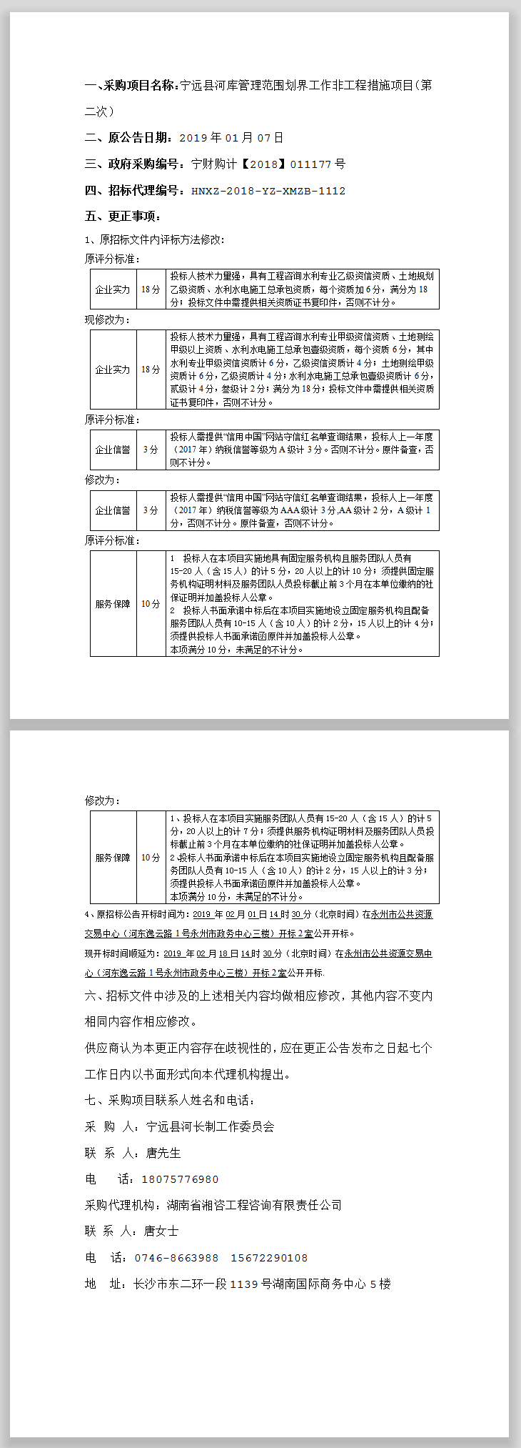 寧遠縣河庫管理范圍劃界工作非工程措施項目(第二次) 公開招標更正公告