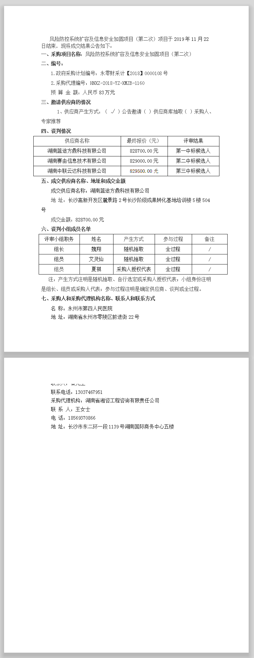風(fēng)險(xiǎn)防控系統(tǒng)擴(kuò)容及信息安全加固項(xiàng)目(第二次)競爭性談判成交公告
