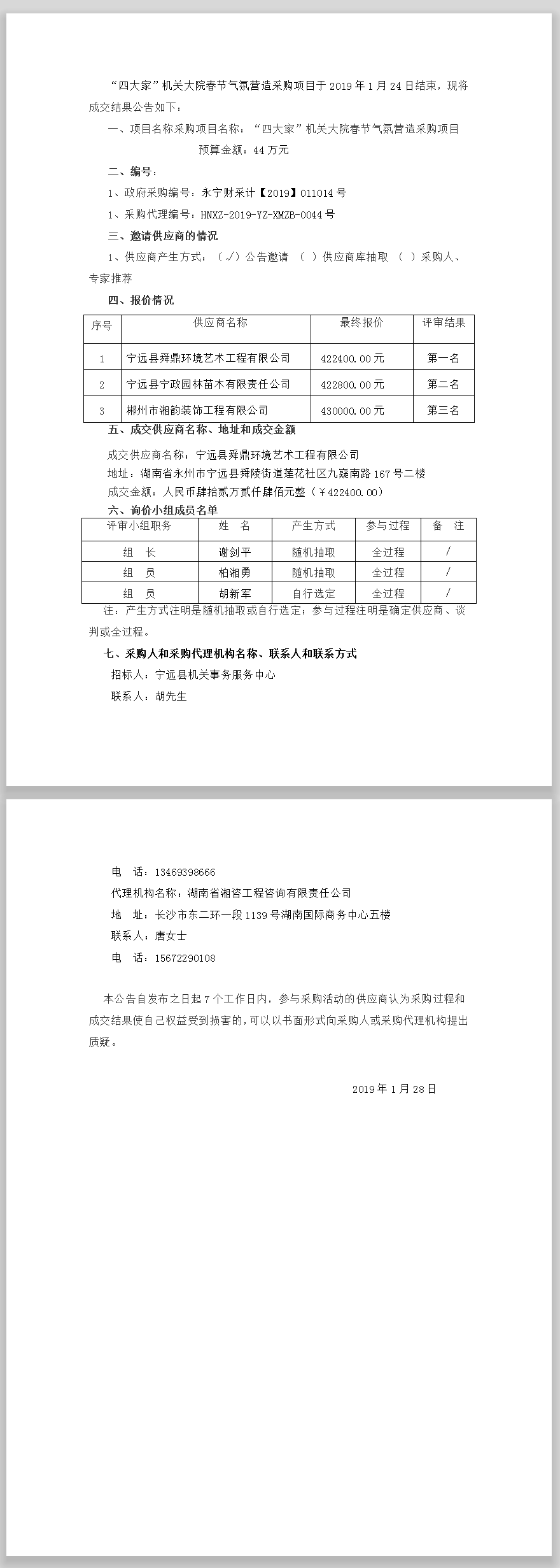 “四大家”機關大院春節氣氛營造采購項目 詢價采購成交結果公告