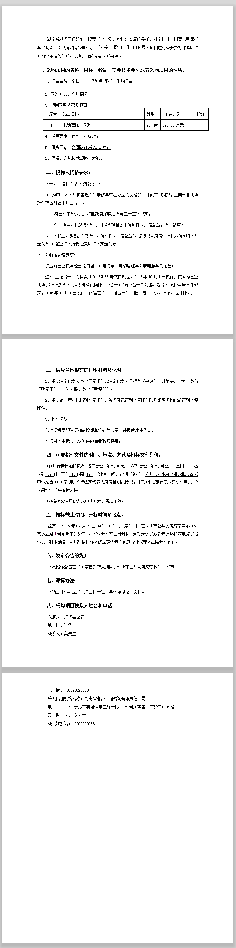 全縣-村-輔警電動摩托車采購項目 公開招標公告