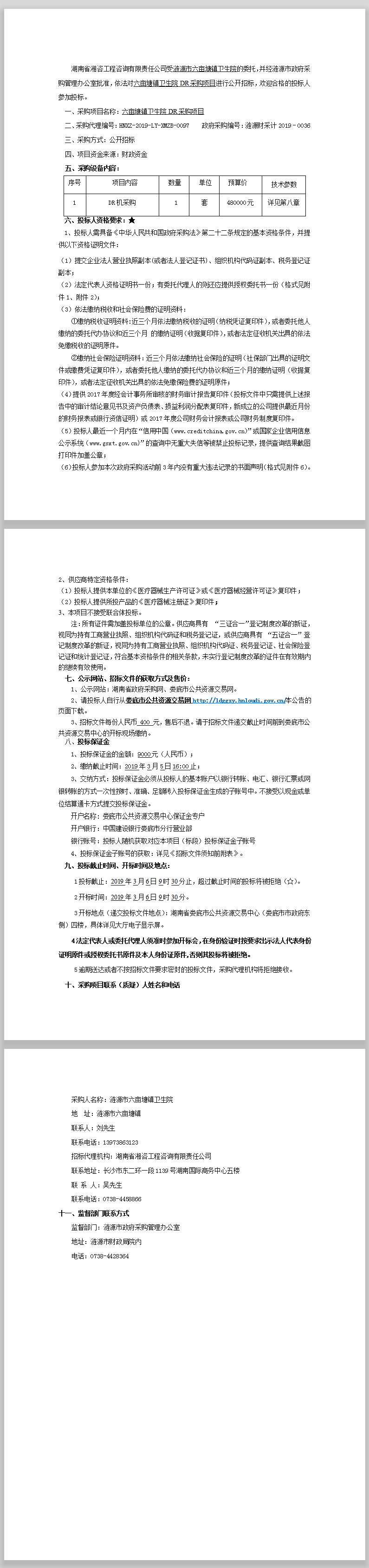六畝塘鎮衛生院DR采購項目招標公告
