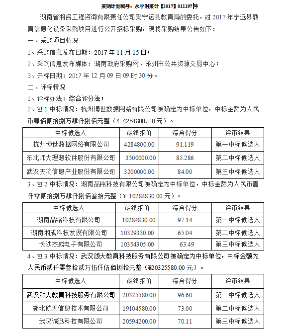 2017年寧遠縣教育信息化設備采購項目中標公告