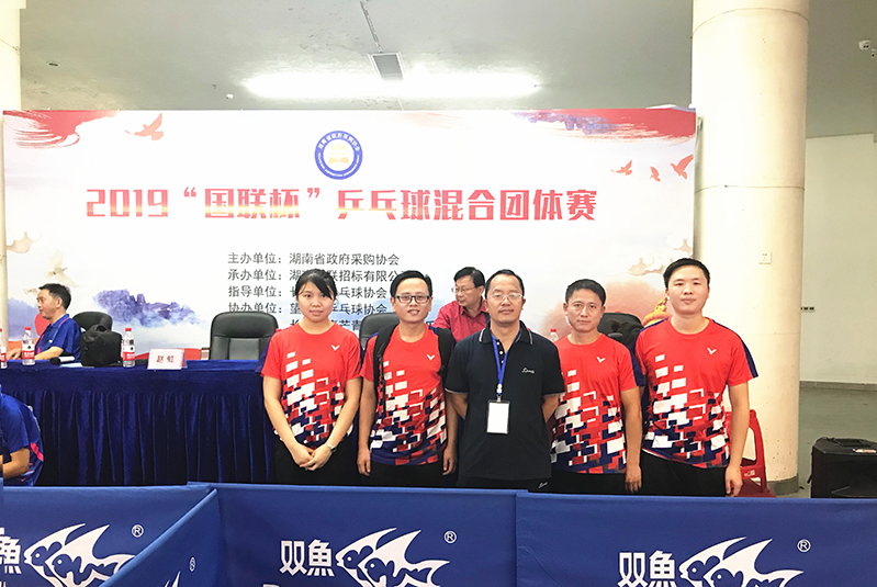 為迎接建國70周年,慶祝湖南省政府采購協(xié)會成立10周年,豐富協(xié)會會員單位職工業(yè)余文體生活,增強職工體質(zhì),加強各單位會員間的溝通和交流,展現(xiàn)政府采購行業(yè)健康向上的精神風貌。9月21日,湖南省政府采購協(xié)會在長沙市望城區(qū)干部職工乒乓球活動中心舉辦2019 “國聯(lián)杯”乒乓球混合團體賽。湖南省政府采購協(xié)會會長趙虹致開幕詞,秘書長易學汶主持開幕式。本次比賽共有19個單位參加,公司作為湖南省政府采購協(xié)會常務(wù)理事單位,總經(jīng)理鄧鋆帶領(lǐng)公司乒乓球參賽選手參賽。