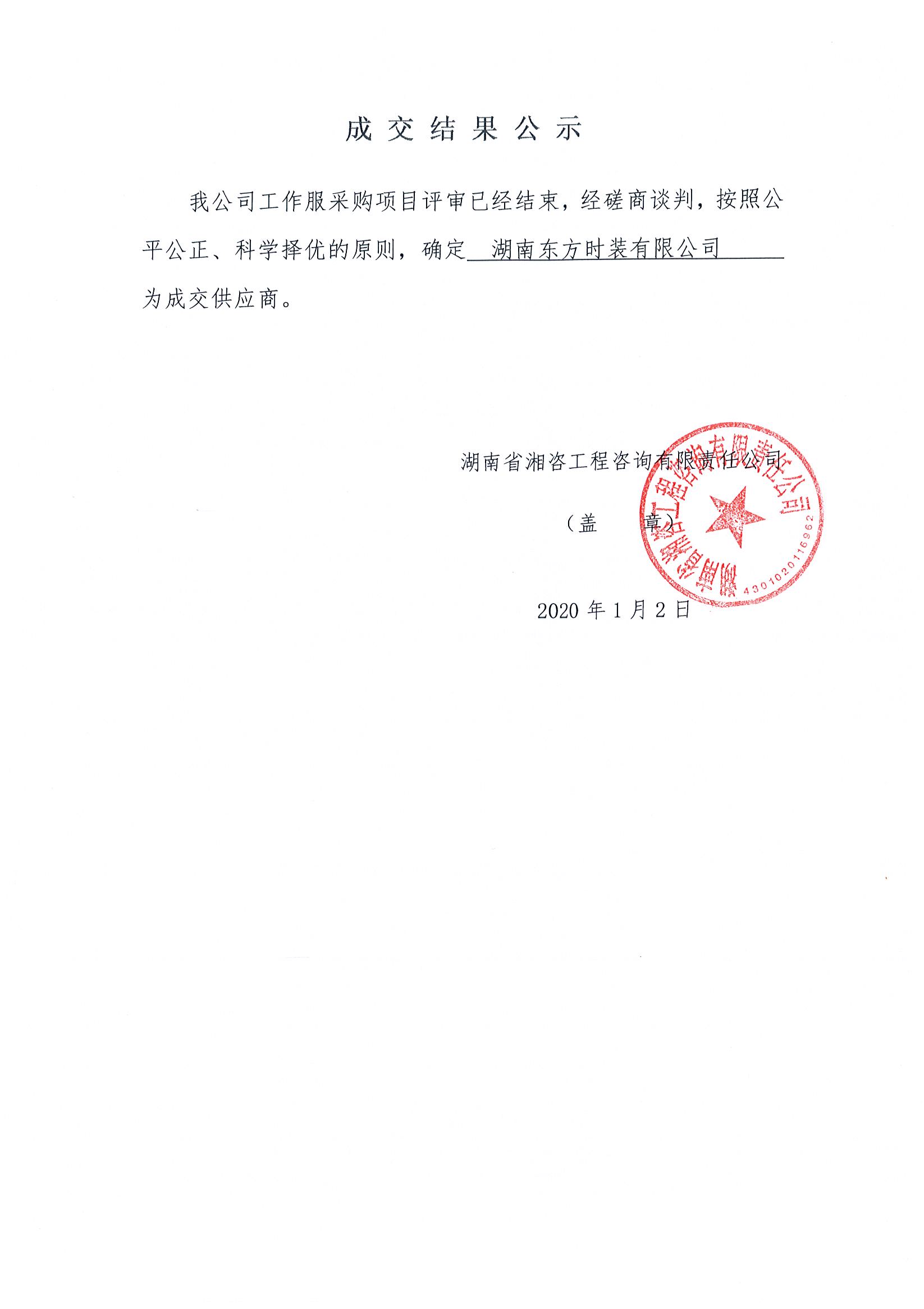 湖南省湘咨工程咨詢有限責任公司工作服采購項目成交結(jié)果公示