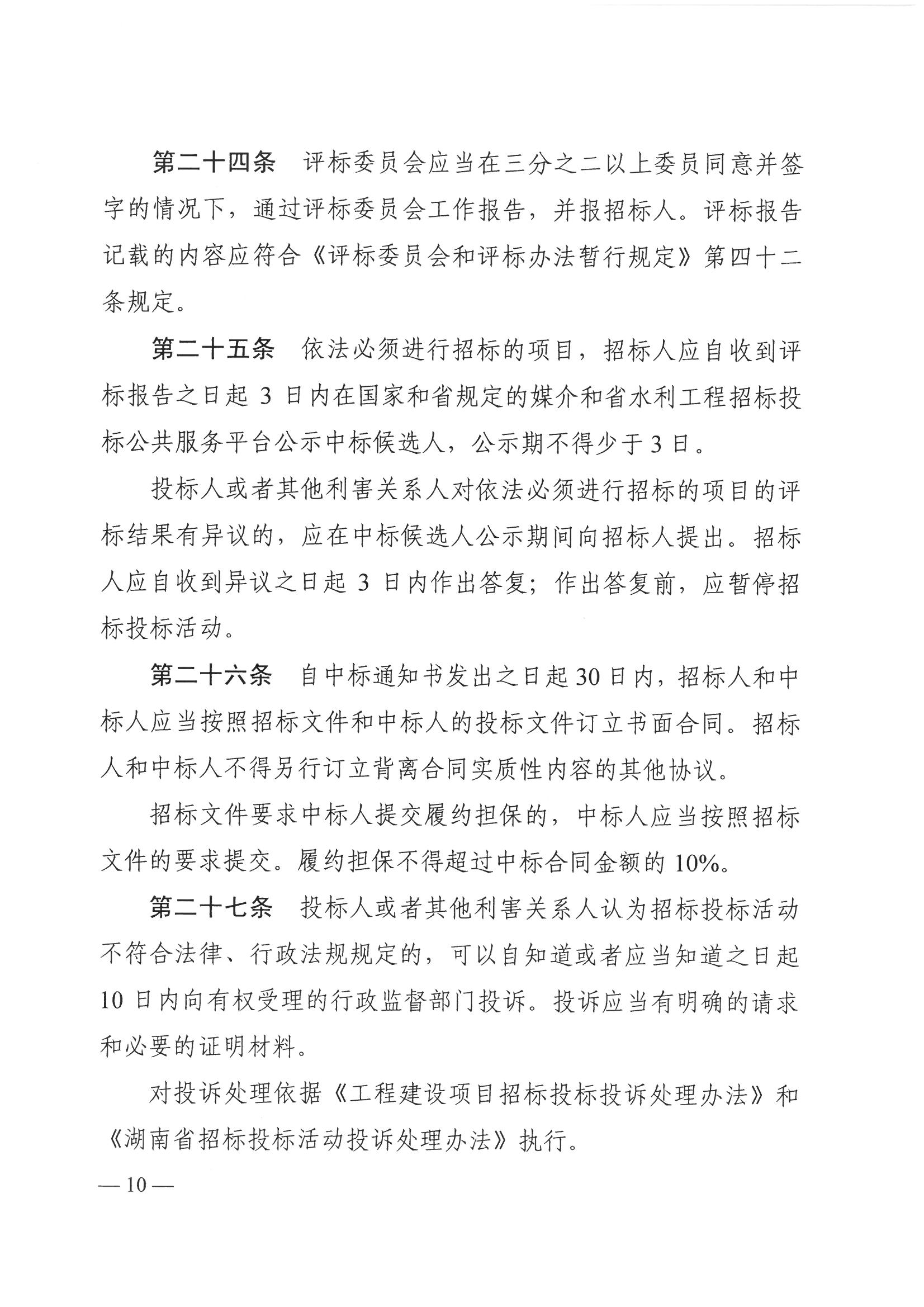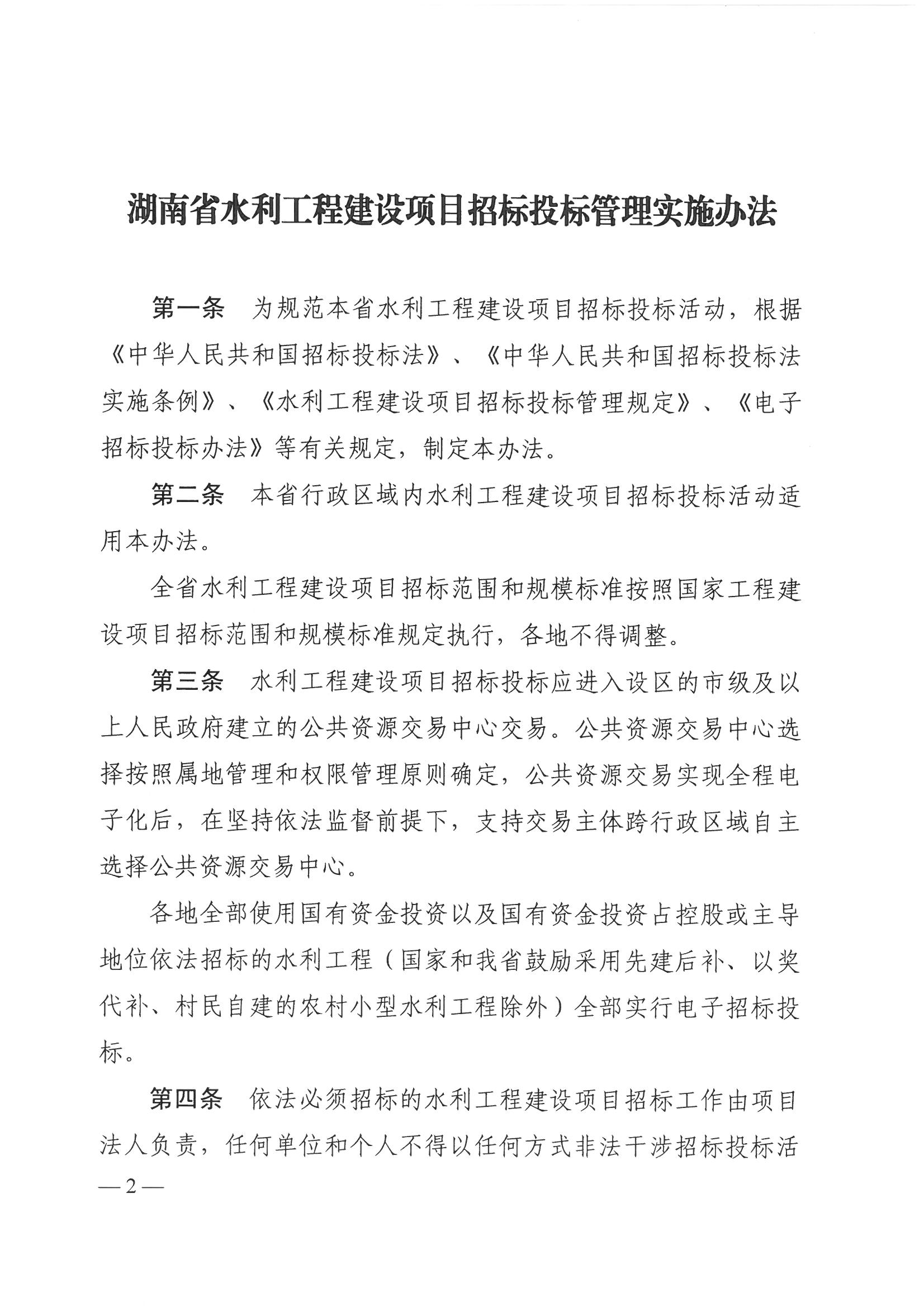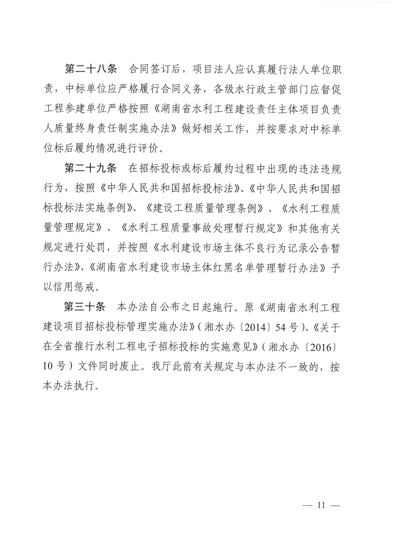 關于印發《湖南省水利工程建設項目招標投標管理實施辦法》的通知 湘水辦【2017】113號