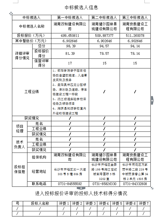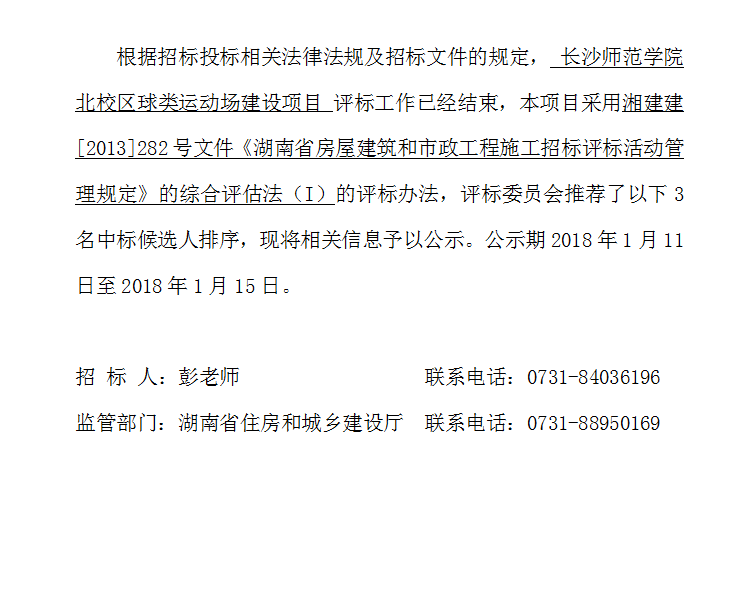 長沙師范學院北校區球類運動場建設項目招標投標信息公示表