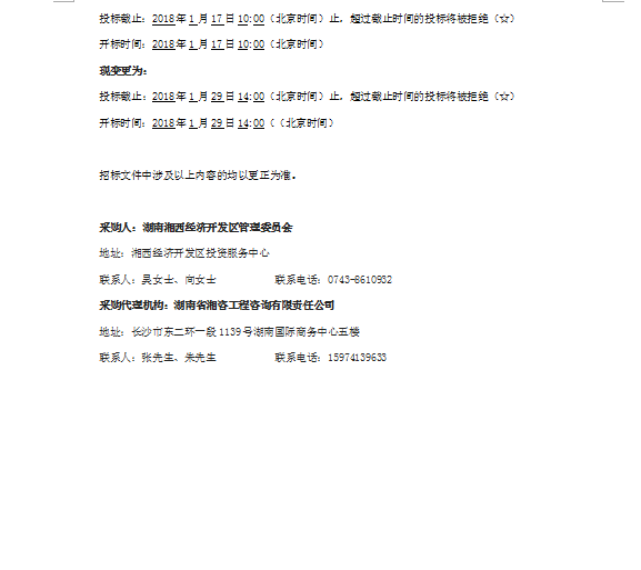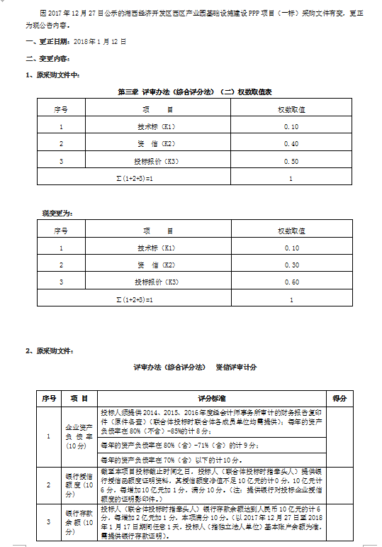湘西經濟開發區西區產業園基礎設施建設PPP項目(一標)更正公告