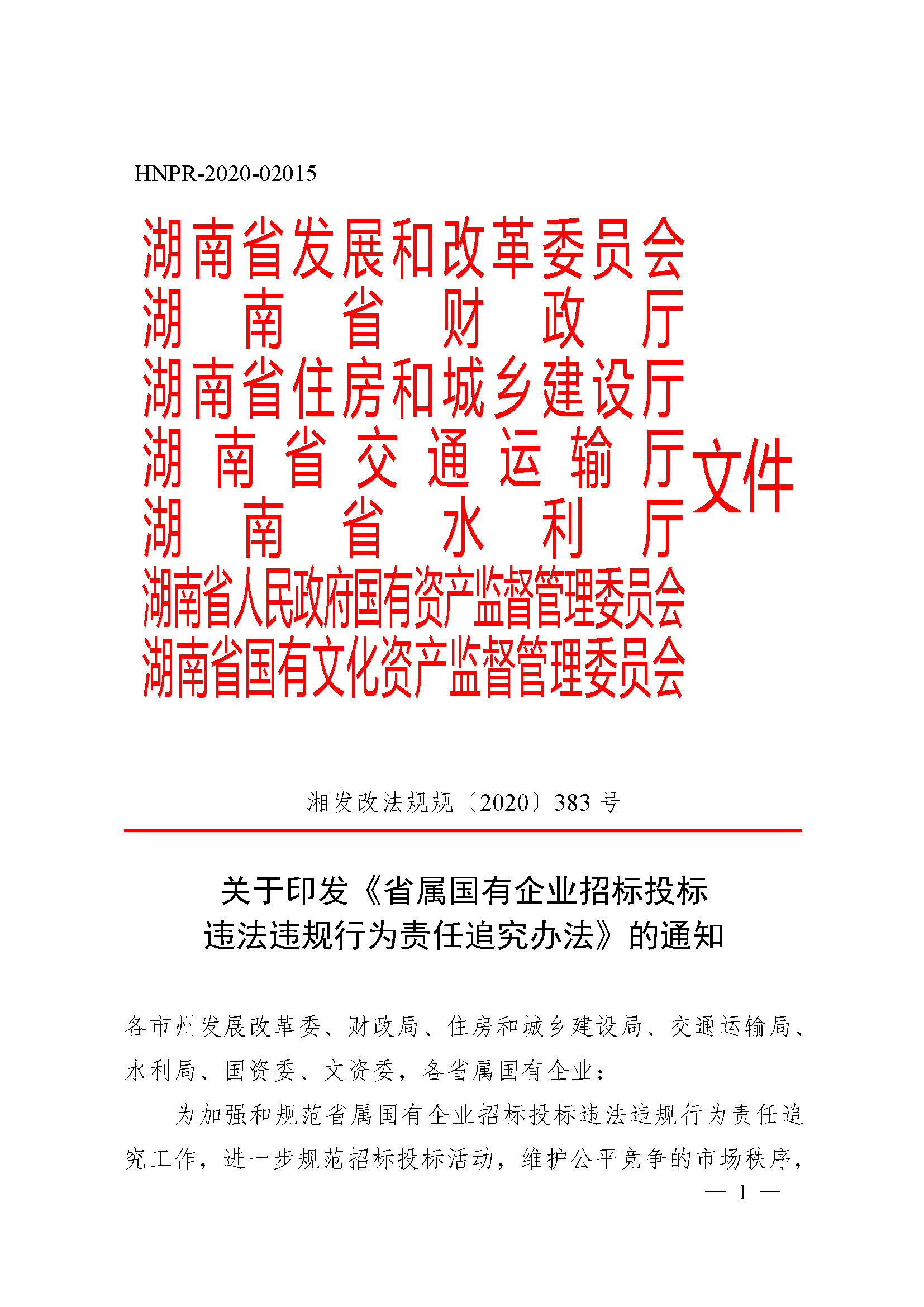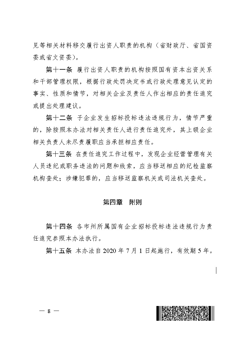 關于印發《省屬國有企業招標投標違法違規行為責任追究辦法》的通知
