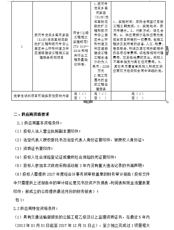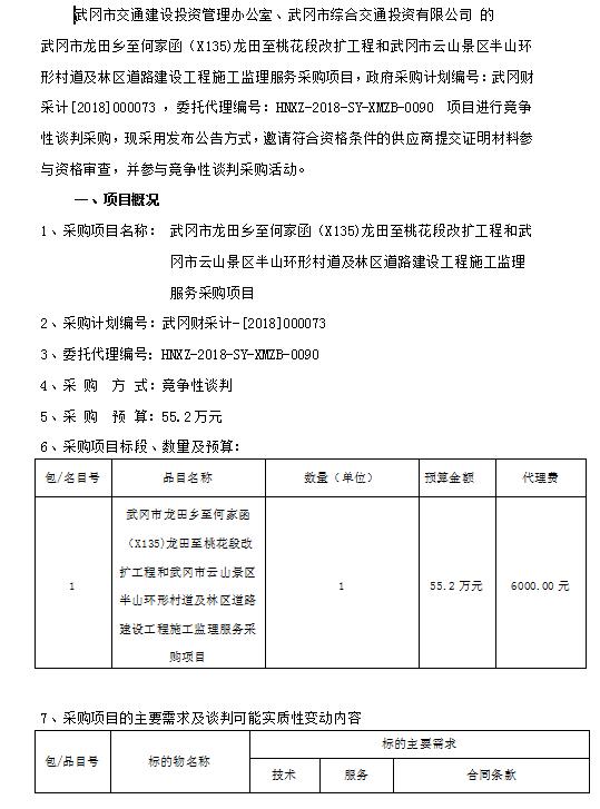 武岡市龍田鄉至何家函(X135)龍田至桃花段改擴工程和武岡市云山景區半山環形村道及林區道路建設工程施工監理服務采購項目競爭性談判邀請公告