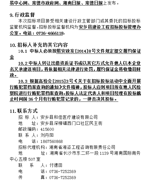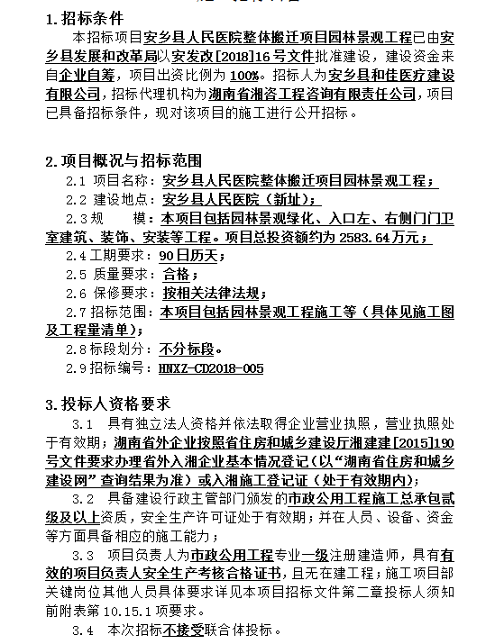 安鄉縣人民醫院整體搬遷項目園林景觀工程 施工招標公告