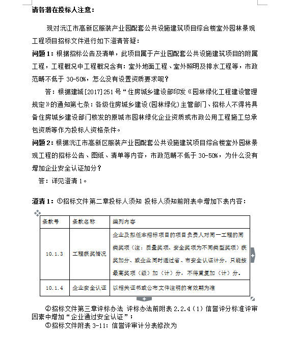 沅江市高新區(qū)服裝產(chǎn)業(yè)園配套公共設(shè)施建筑項(xiàng)目綜合樓室外園林景觀工程澄清答疑公告