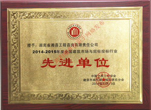 【喜訊】熱烈慶祝我司榮獲2014-2015年全國建筑市場與招標投標行業先進單位
