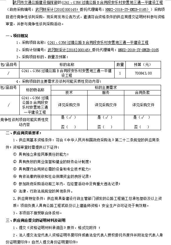 G241、G356過境公路B合同段安樂村安置地三通一平建設工程 競爭性談判邀請公告