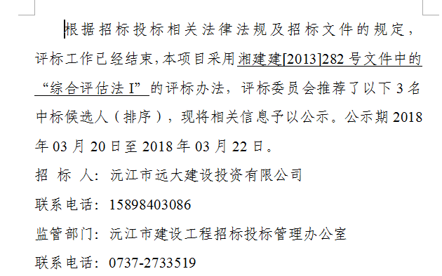 沅江市高新區服裝產業園配套公共設施建筑項目綜合樓室外園林景觀工程中標候選人公示