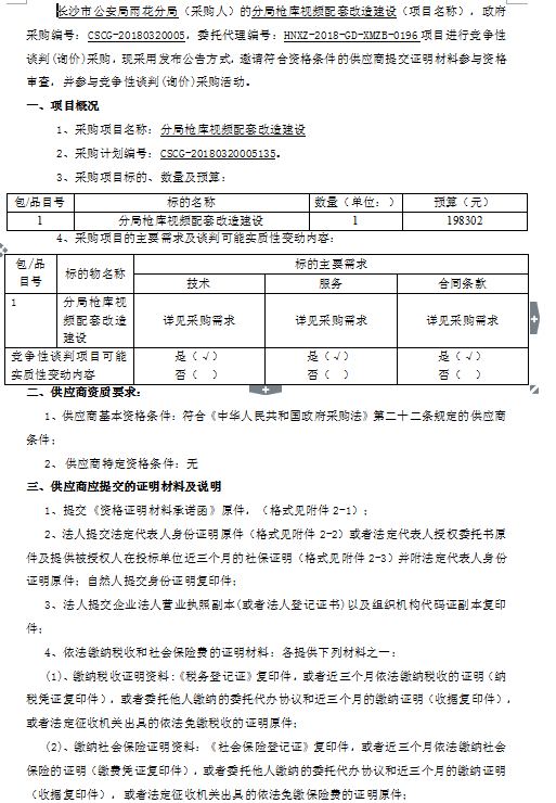 分局槍庫視頻配套改造建設競爭性談判邀請公告