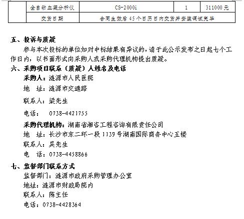 漣源市人民醫院全自動血細胞分析儀、全自動血凝分析儀采購中標結果公告