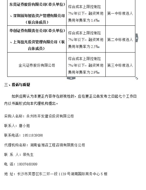永州市開發建設投資有限公司2017年非公開公司債項目中標公告更正公告