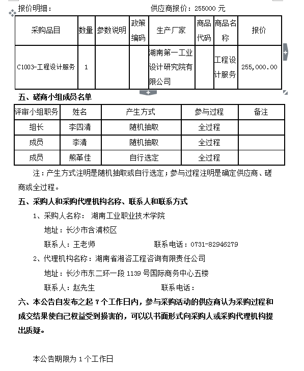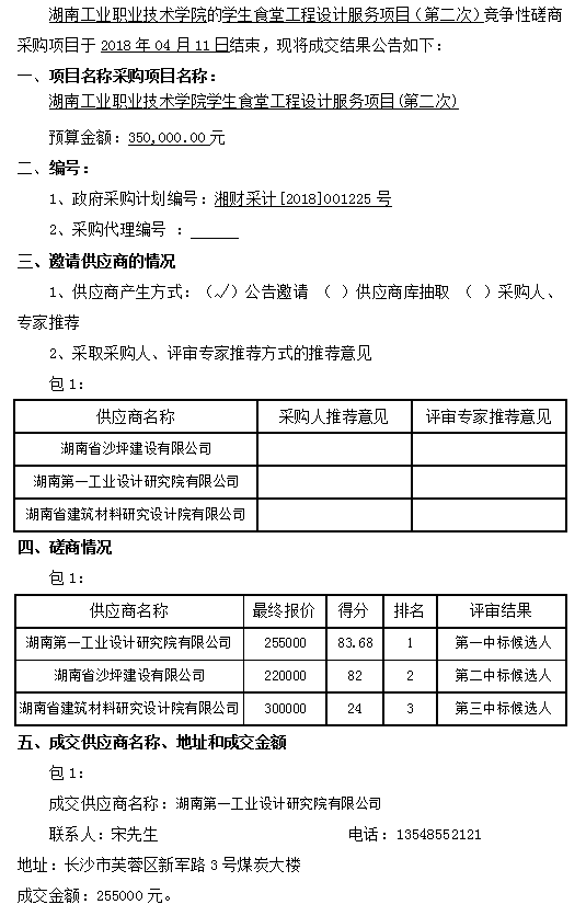 湖南工業職業技術學院學生食堂工程設計服務項目(第二次)