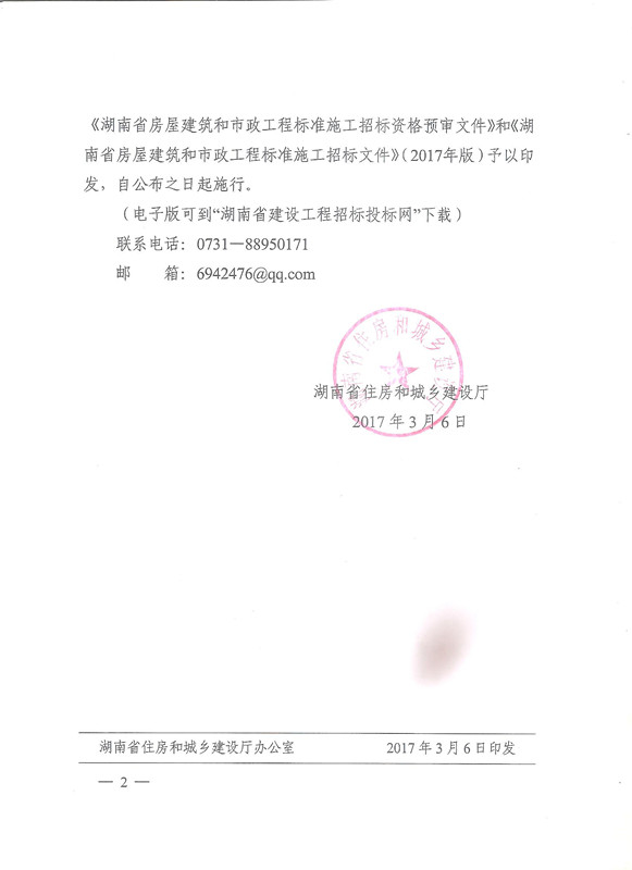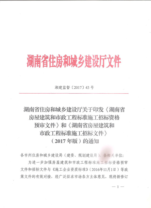 湖南省住房和城鄉建設廳關于印發《湖南省房屋建筑和市政工程標準施工招標資格預審文件》和《湖南省房屋建筑和市政工程標準施工招標文件》通知湘建監督〔2017〕43號.rar