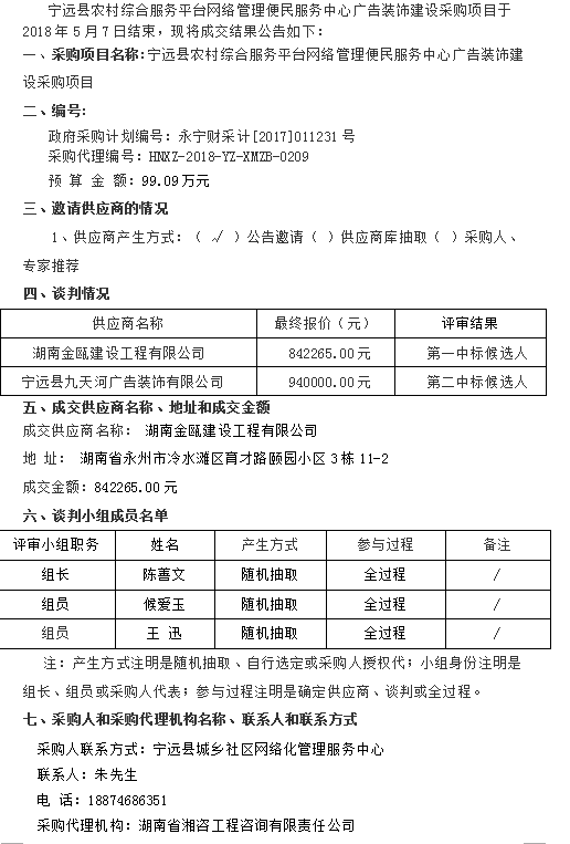 寧遠(yuǎn)縣農(nóng)村綜合服務(wù)平臺(tái)網(wǎng)絡(luò)管理便民服務(wù)中心廣告裝飾建設(shè)采購項(xiàng)目競(jìng)爭(zhēng)性談判成交公告